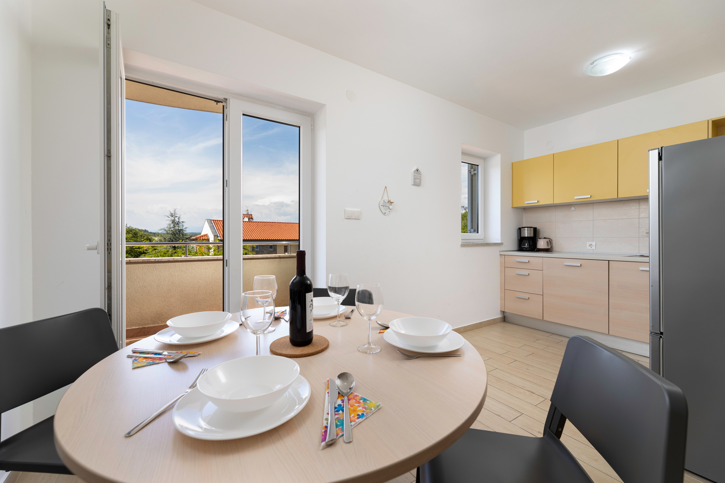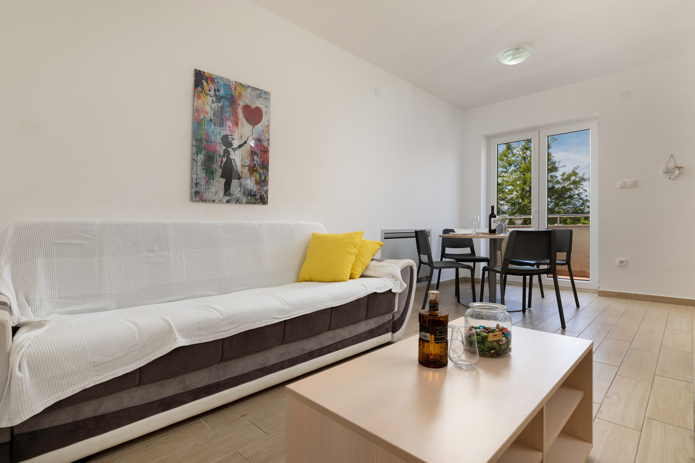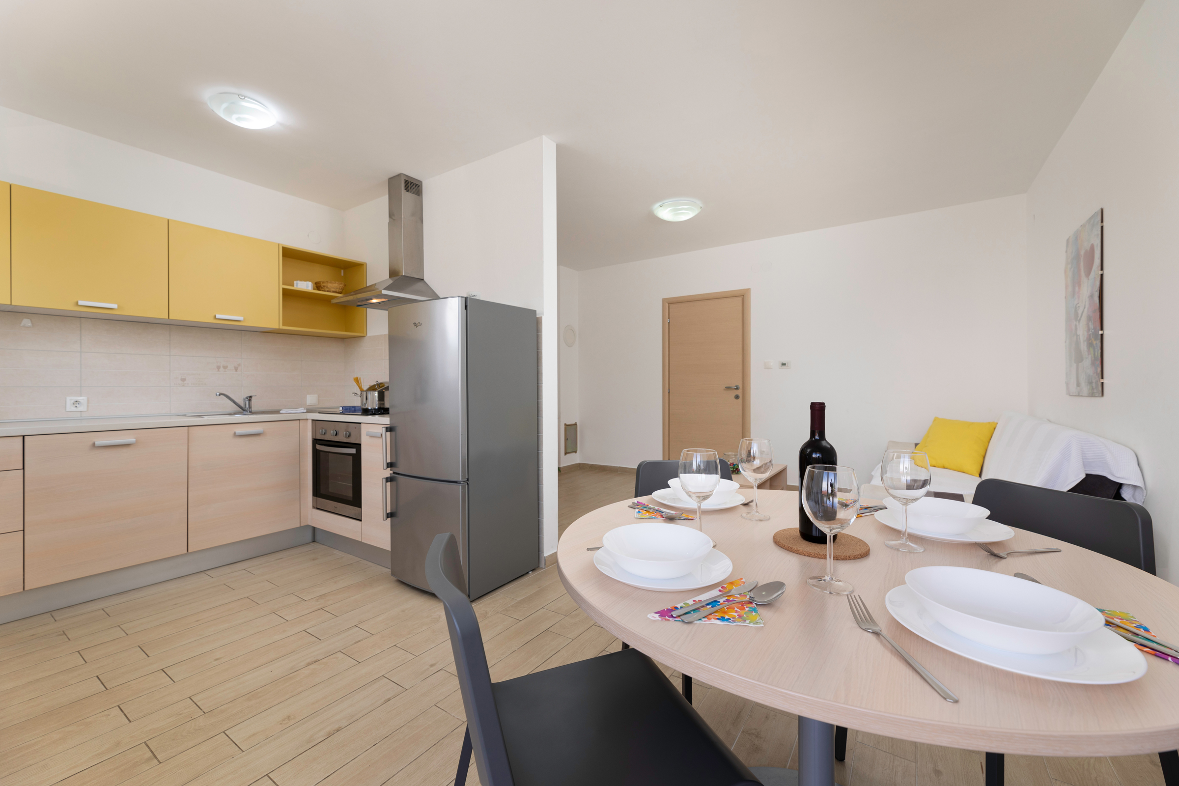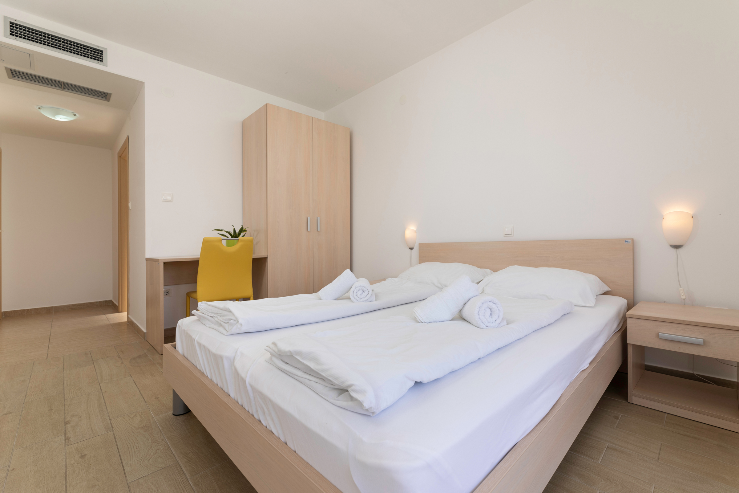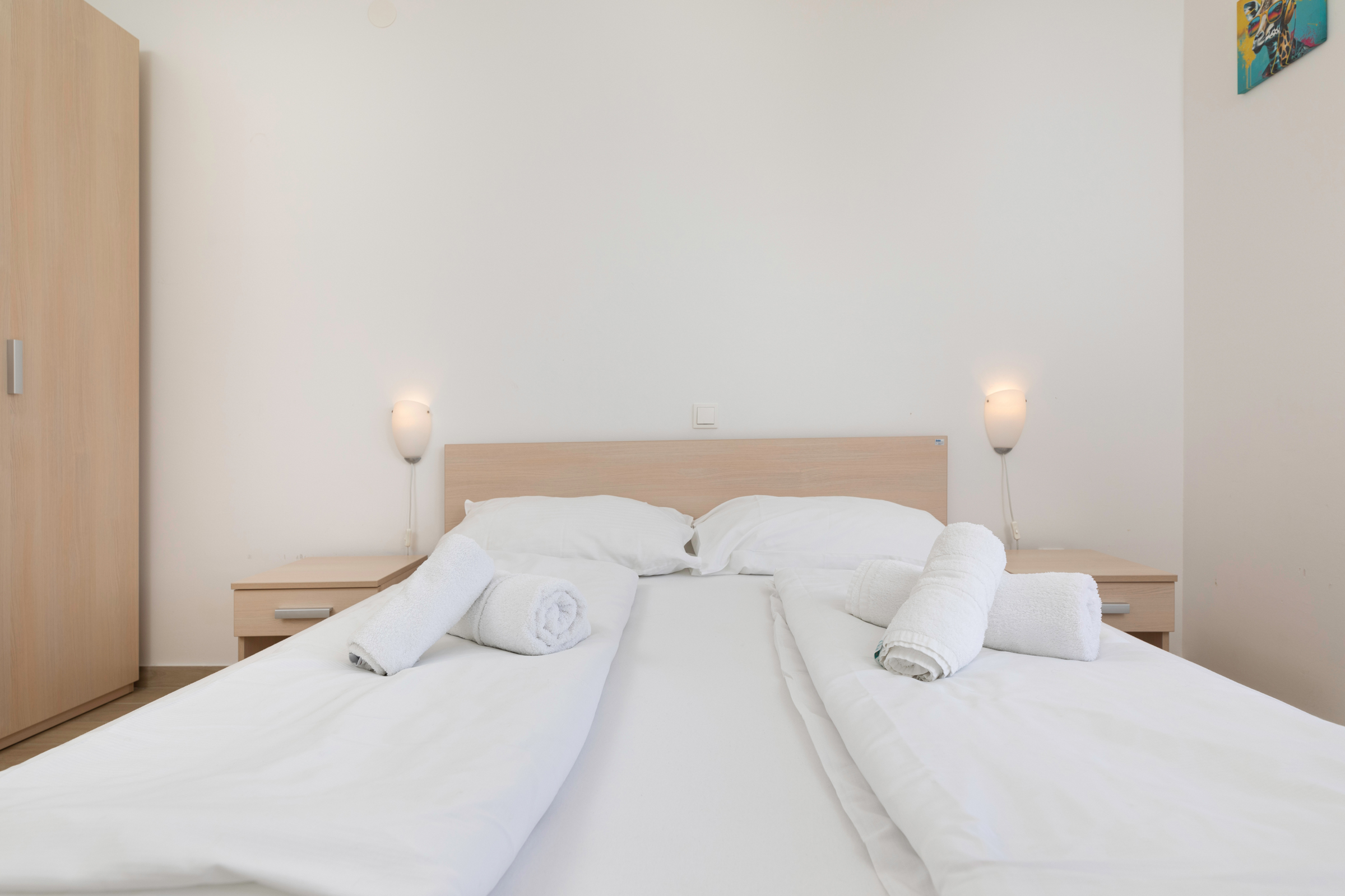 Apartment with a total size of 67 m2, consist of two bedrooms, with a private bathroom and access to the balcony from both rooms, a living room, a dining room with a kitchen and a sofa bed for one person.