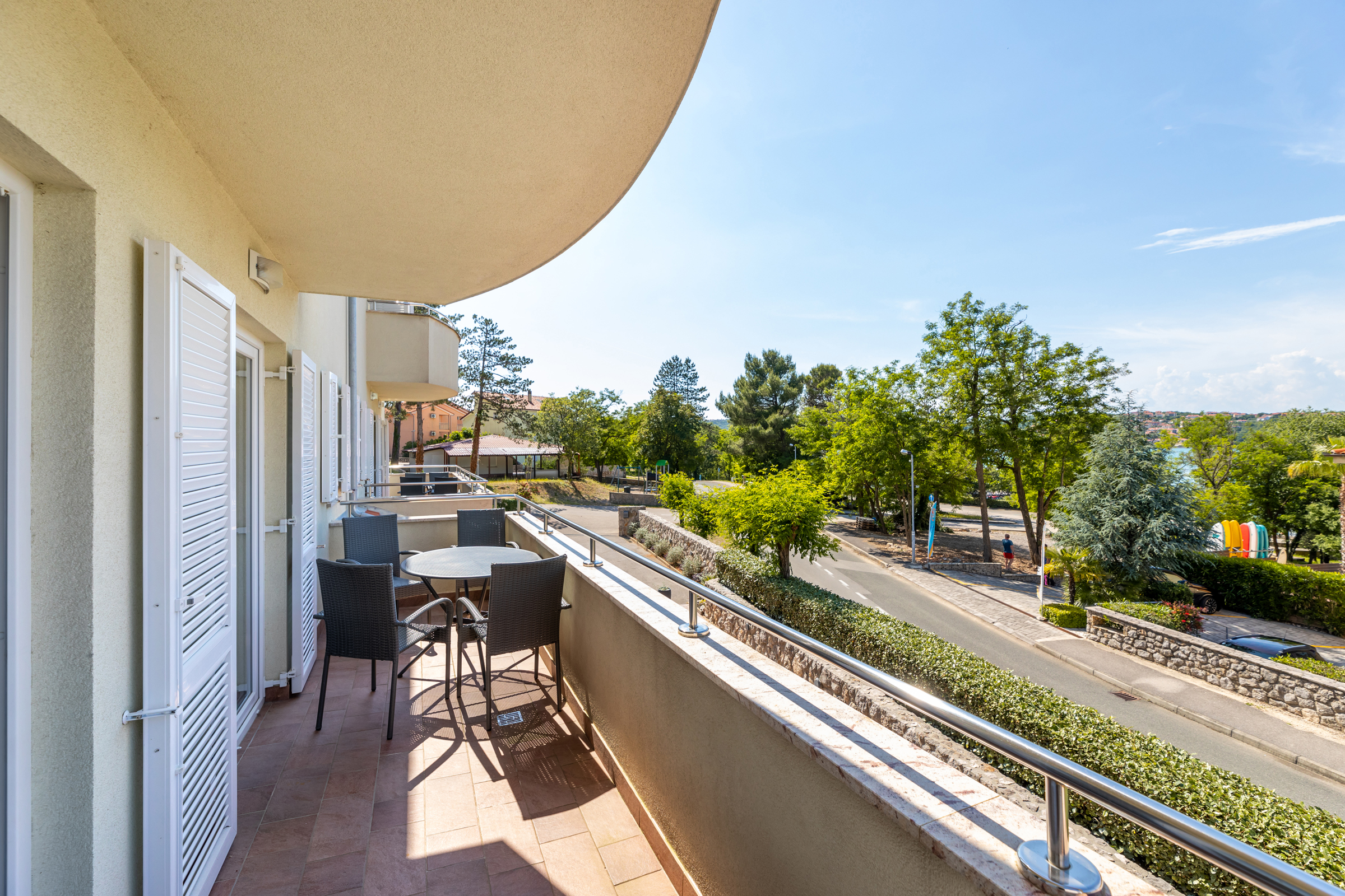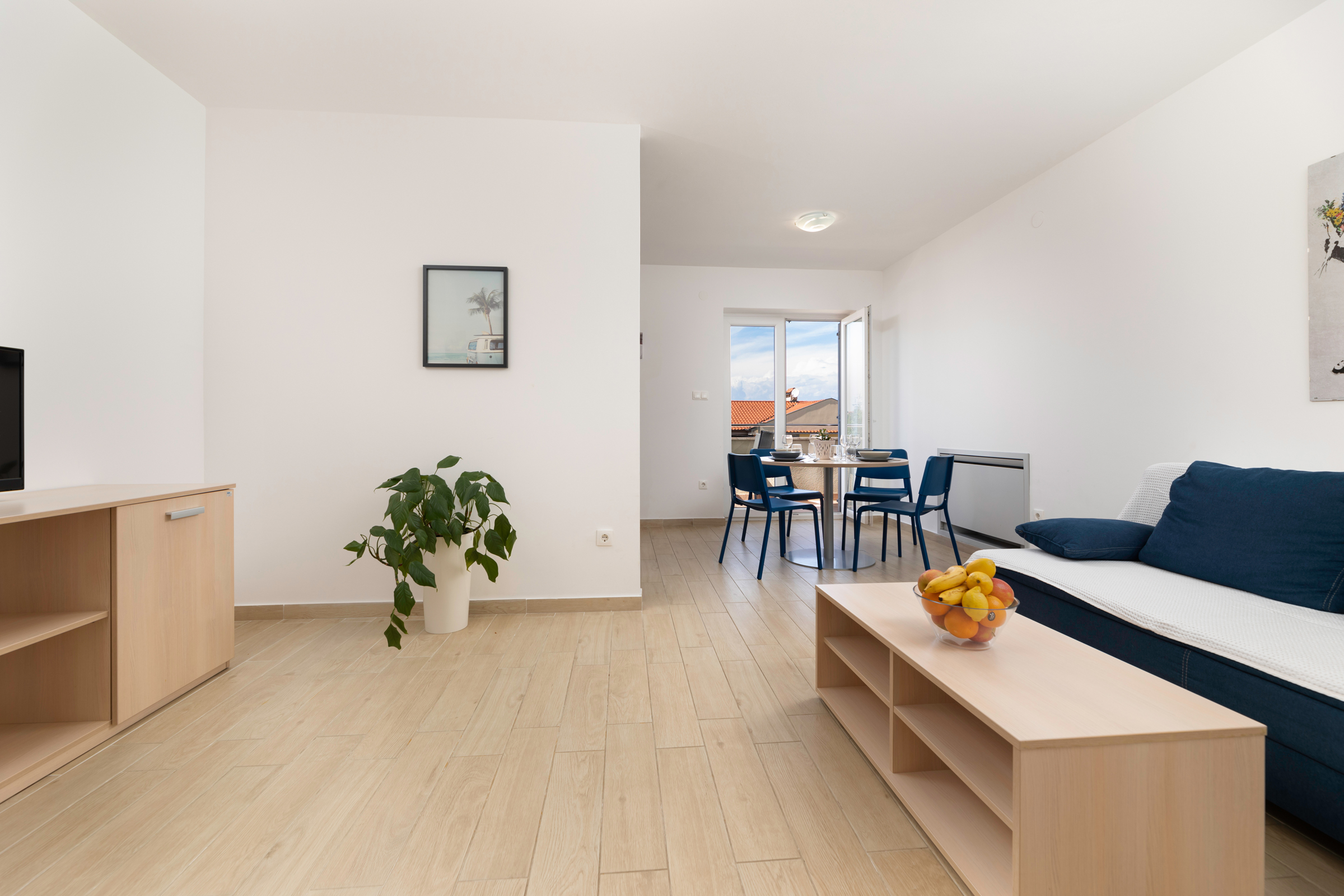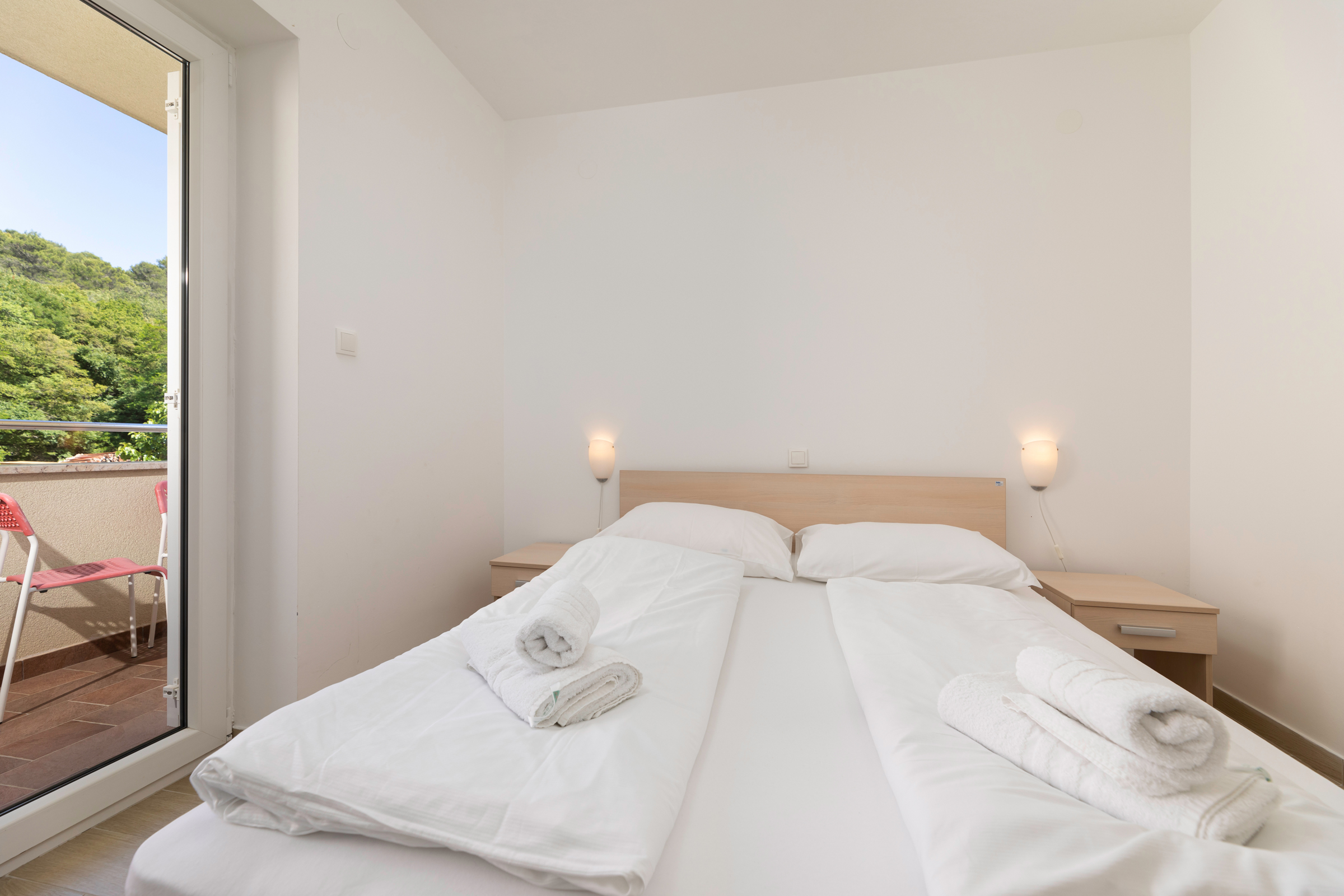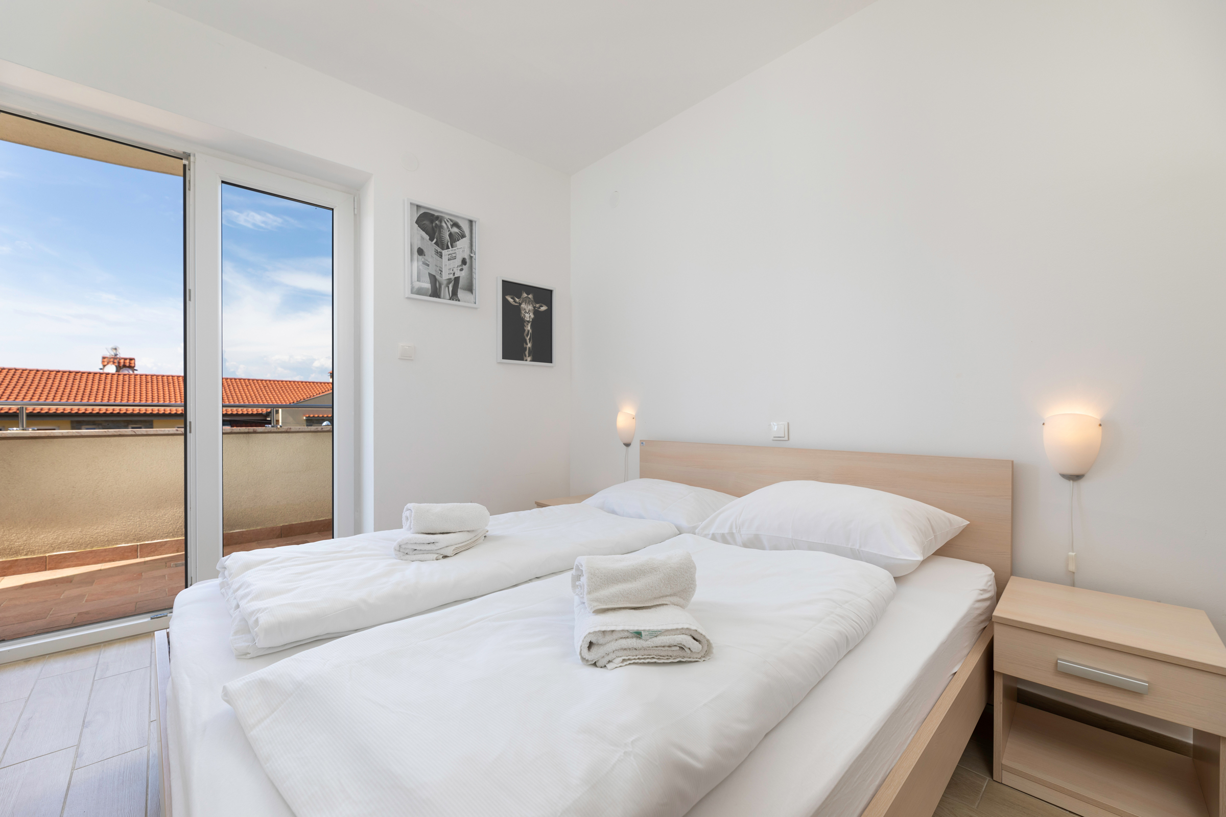 Apartment with a total size of 67 m2, consist of two bedrooms, with a private bathroom and access to the balcony from both rooms, a living room, a dining room with a kitchen and a sofa bed for one person.