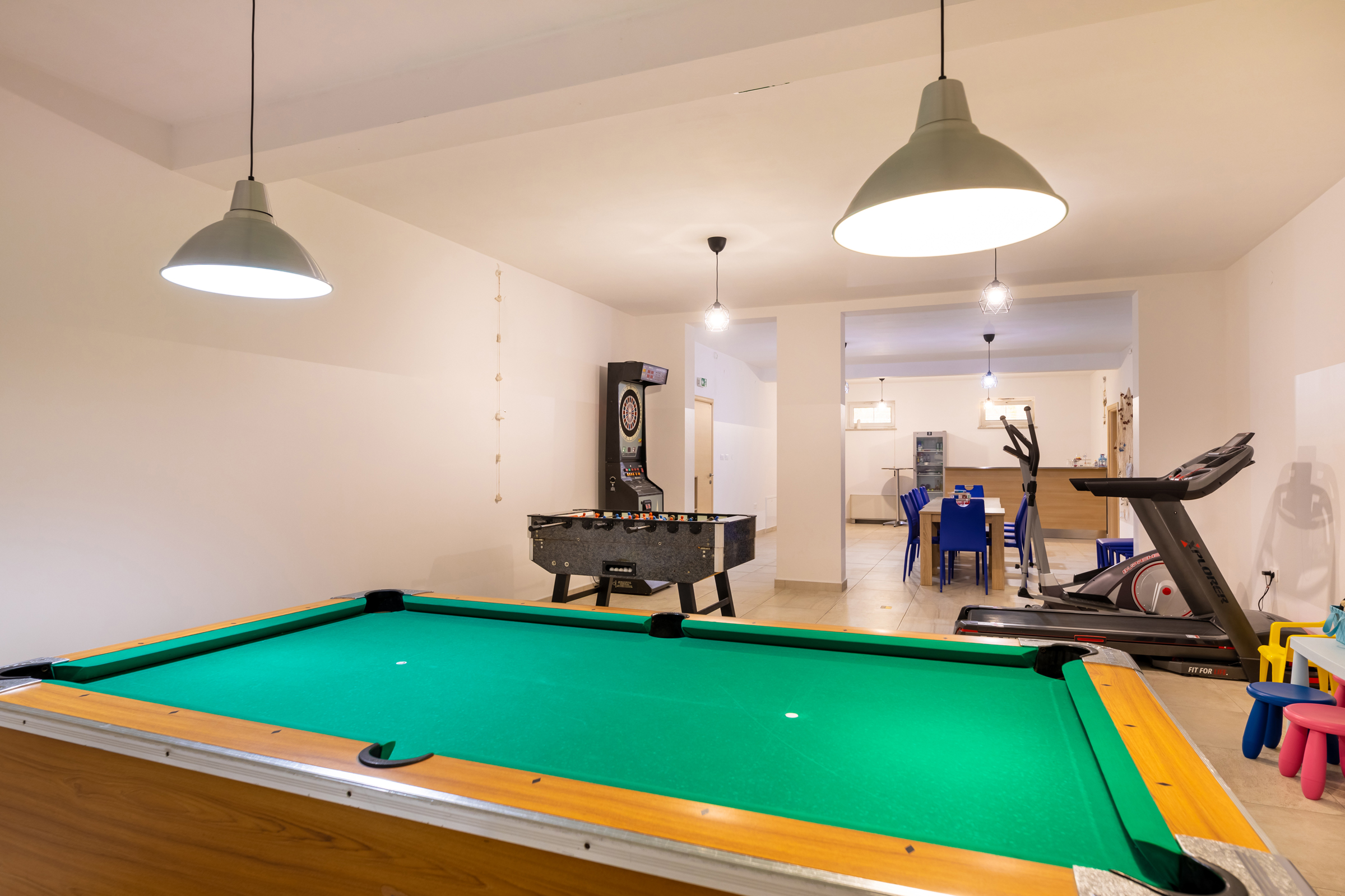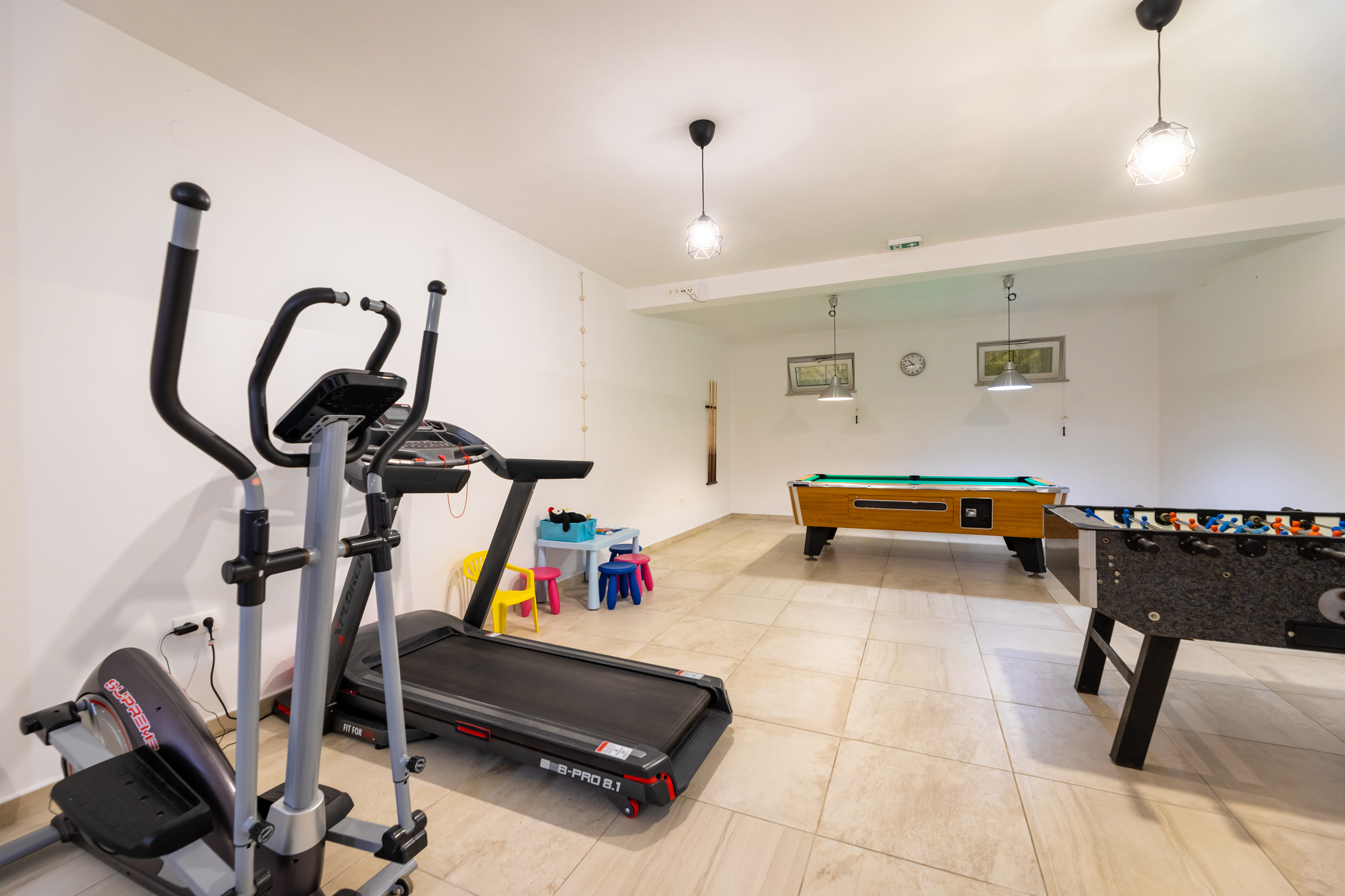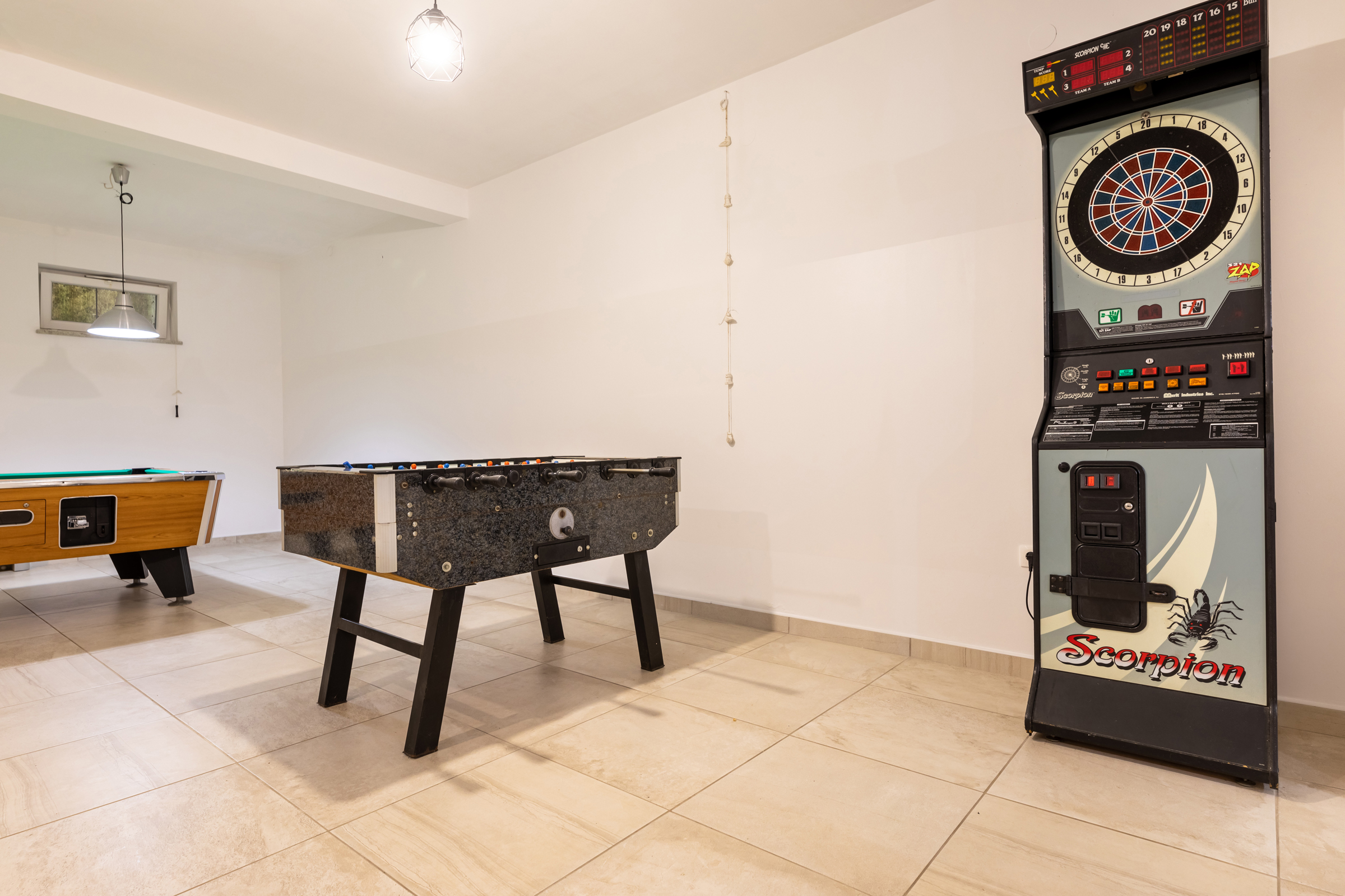 Guests have available for shared use: a plot of 800 m2, a barbecue, and inside the house a basement with fun games (darts, table football, billiards…)